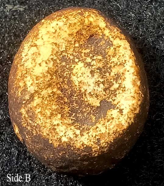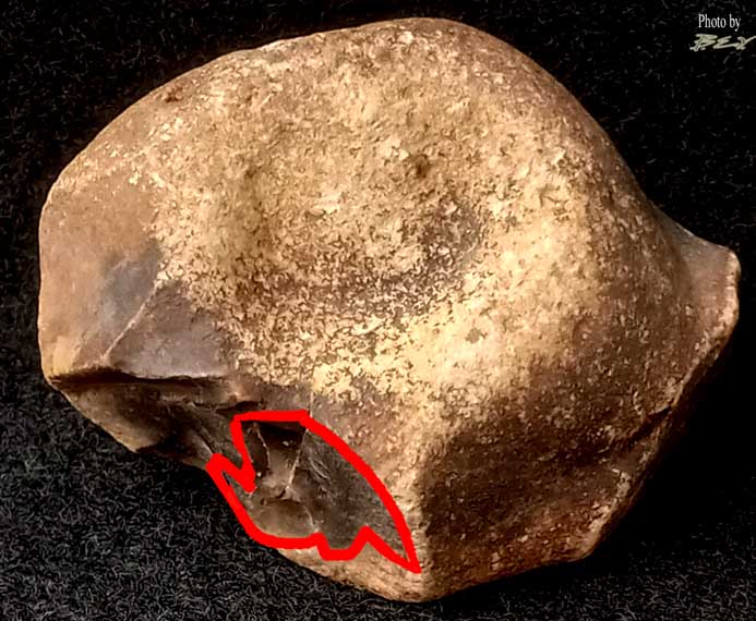 A frontal overhead view of Side B reveals the oval-shaped base of the stone. As you can see the oval-shaped base is painted black. Do you recall seeing the black oval-shape on another stone? Well, you did back in chapter one. Apparently the blackened oval shape held some important meaning as it too was repeatedly seen.